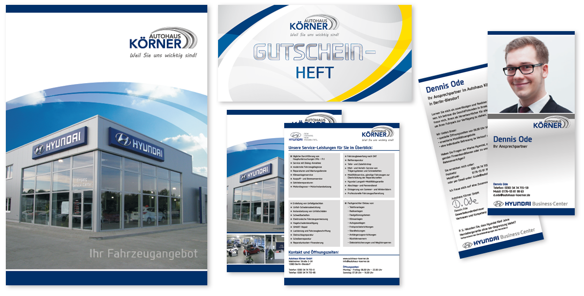 Layout, Druck und Weiterverarbeitung von Werbemitteln, u.a. Angebotsmappen, Gutscheinhefte, (Verkäufer)Flyer