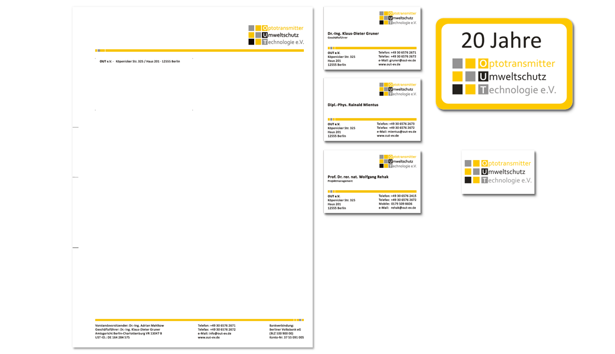 Komplette Neugestaltung der Geschäftsaustattung, u.a. Briefbogen, Visitenkarten und Aufkleber